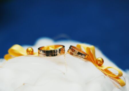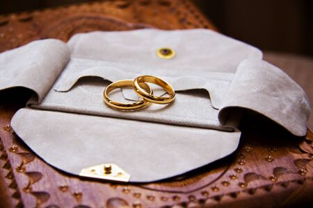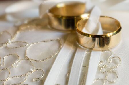 Gold wedding rings. The concept of marriage, family relationships, wedding paraphernalia