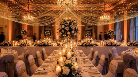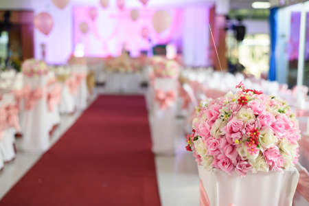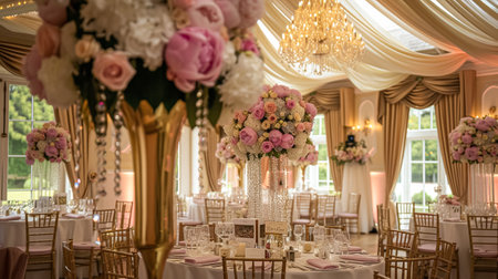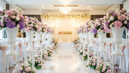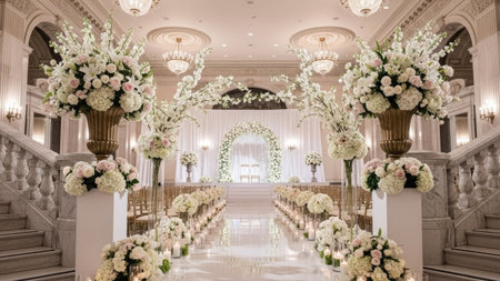 An Elegant floral arrangements in luxury venue for wedding celebration
