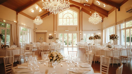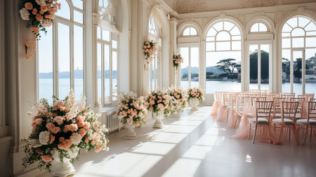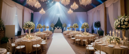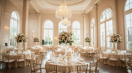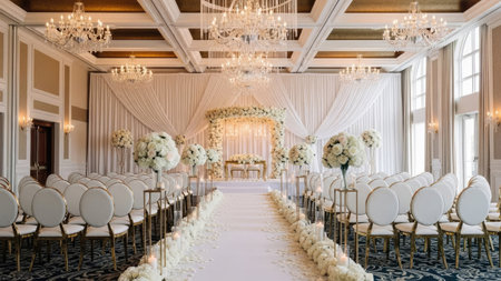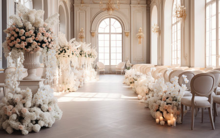 The timeless elegance and luxurious decor of a sophisticated wedding ceremony. Generative AI