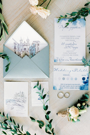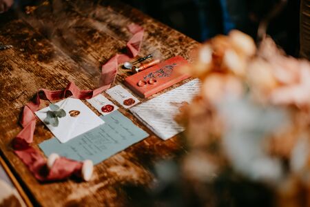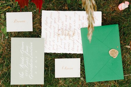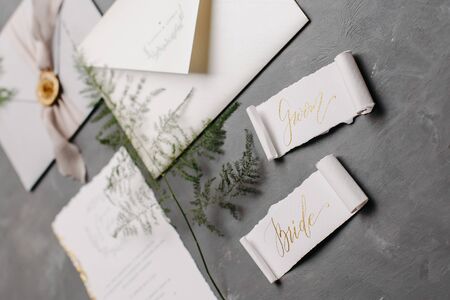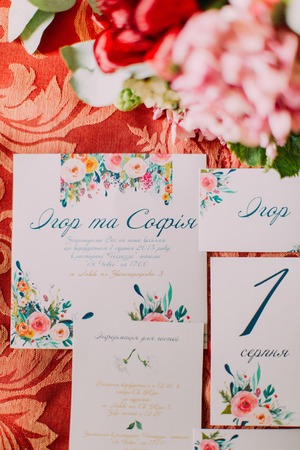 Stylish wedding ceremony details. Printing and wedding invitations.