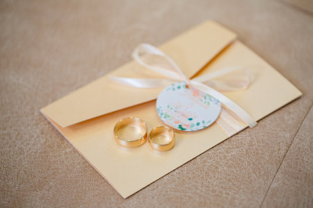 gold wedding rings as an attribute of a young couple's wedding