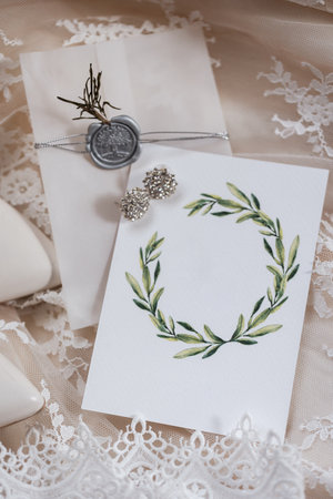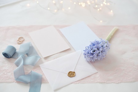 blank wedding invitation top view. High quality photo