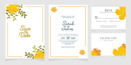 Set of card with flower rose, leaves. Floral poster, invite. Wedding ornament concept. wedding invitation card template Vector illustration.