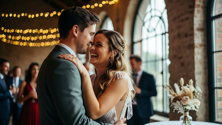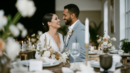 A joyful couple sharing romantic moment during their wedding ceremony