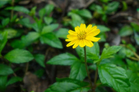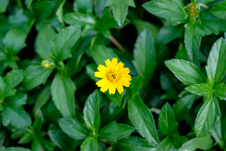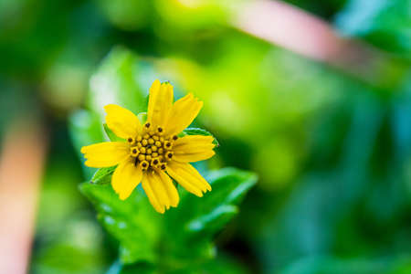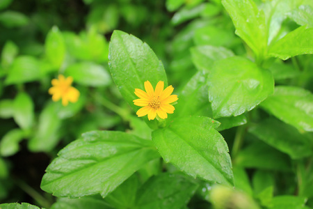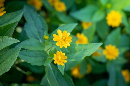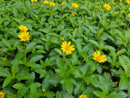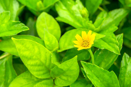 Melampodium divaricatum or Little yellow star in green nature
