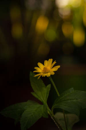 Yellow flower with green leaves Soft focus, selective focus, and shallow depth of field DOF