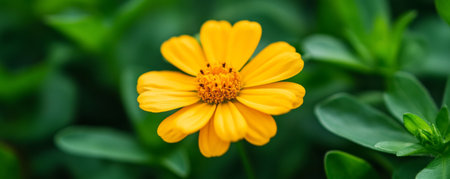 Close-up of vibrant yellow flower in a lush green garden, nature and tranquility concept