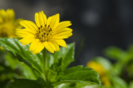 Close up Melampodium divaricatum, Golden Crownbeard, Cowpen Daisy, golden crown beard in the nature