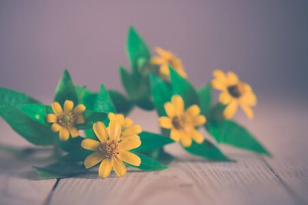 Small yellow flowers on old wooden.