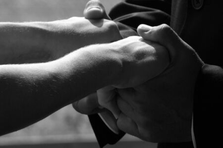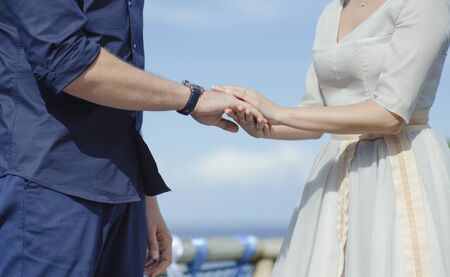 Close-up hand contact. The concept of meetings and breakups. Romance.