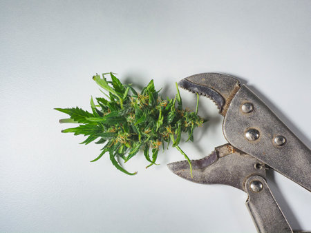 A Scientist is trimming cannabis sativa to planning , alternative medicine concept