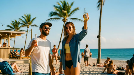 Youthful fashion display vibrant summer outfits showcasing individuality by the beach