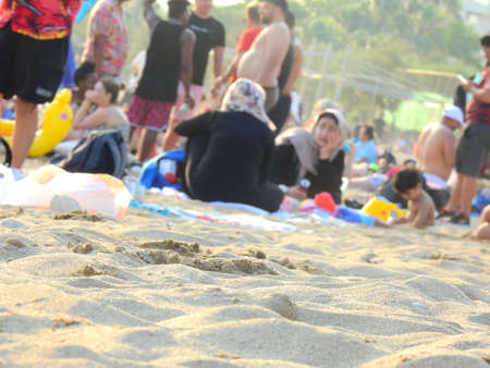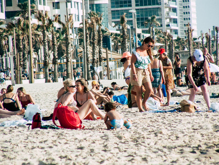 Tel Aviv Israel October 05, 2019 View of unknowns people having fun on the beach of Tel Aviv in the afternoon