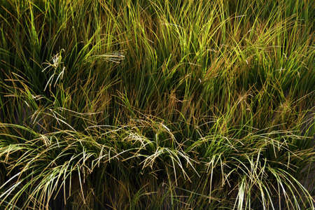 Natural background, green sedge closeup. Shiny, glossy grass plant