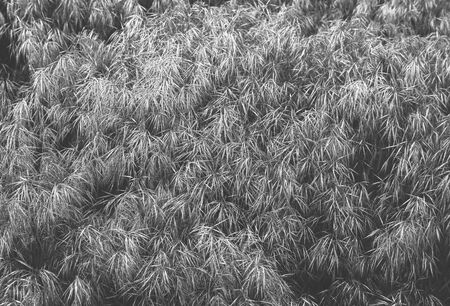 Texture of black white ornamental grass close up with natural pattern of long leaves on sunlight background outdoors.