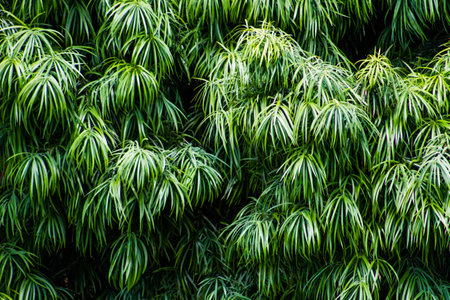 Rhapis humilis Blume, Palmae, Reed rhapis, Slender lady palm soft green flower blooming on burred of nature background