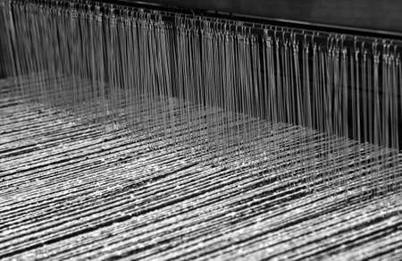 Closeup photograph of an old threaded loom