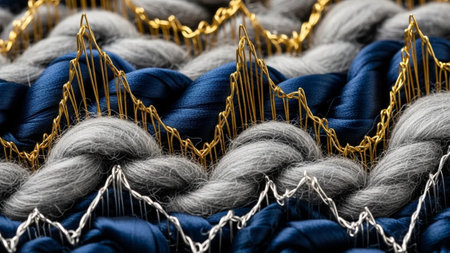 macro shot of warp knitting process, created with generative ai