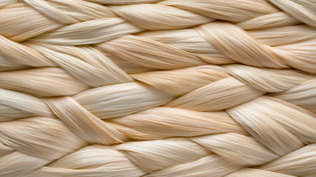 Braided blonde hair texture with smooth silky strands and natural shine. Haircare, beauty, and fashion concept
