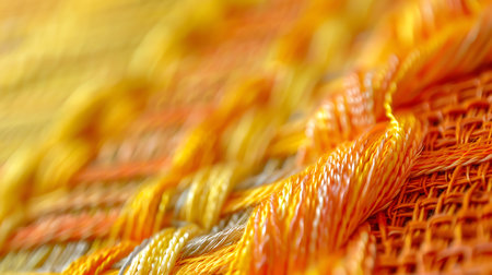 Explore the intricate texture and vibrant colors of yellow and orange threads in this close-up view, perfect for showcasing craft and textile beauty.