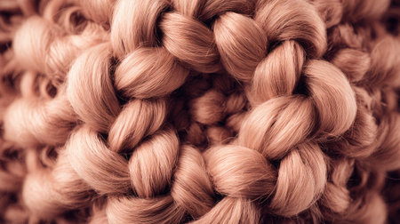 This close-up image showcases intricately braided hair in warm peach tones, emphasizing the texture and patterns created by delicate woven strands. Perfect for beauty and hairstyle themes.