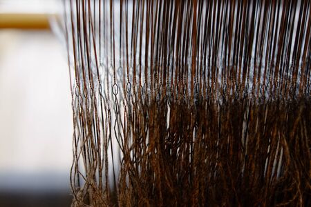 Detail of weaving loom for homemade silk or textile production