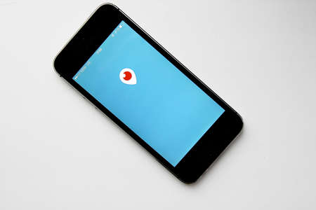 MOSCOW, RUSSIA - FEBRUARY 19, 2016: Periscope mobile app logo in screen on a Apple iPhone 5s. Periscope is made by Twitter - online broadcast from any point where you have internet connection. Live video.