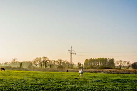 horses at sunset in a big field Europe Germany