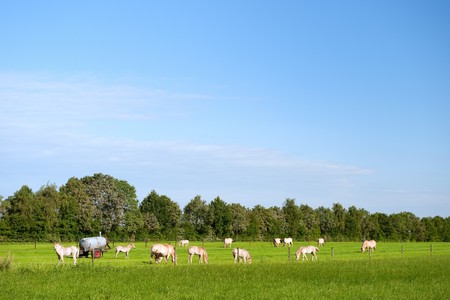 horses grazing in a field in Friesland, Holland