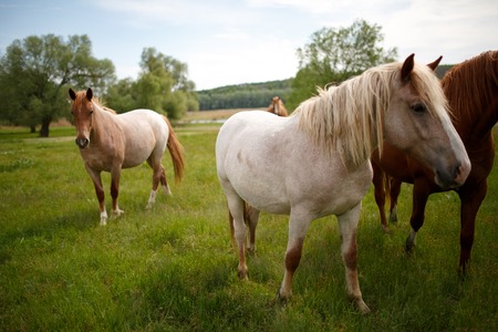 Family horses on a green meadow.