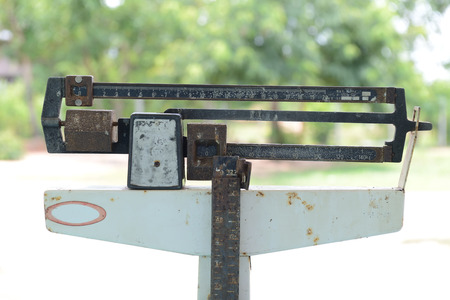 Close-up shot of retro and vintage scale or balance indicating weight in kilo.