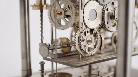 Explore the beauty of mechanical design with this close-up image showcasing intricate vintage gears and springs, perfect for artistic and educational projects.