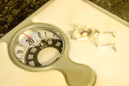 A tiny skeleton on a set of weighing scales.