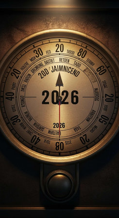 A gauge chart with a needle pointing to a specific value on a scale. --ar 3:2 Job ID: 2c215ab6-4294-451d-a65f-0df691b5ff02