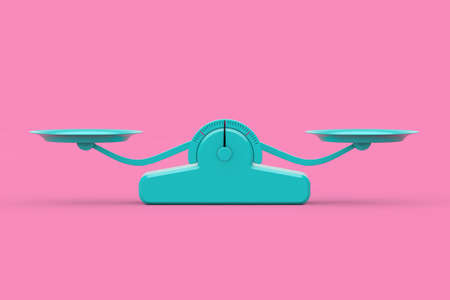 Simple Blue Balance Scale in Duotone Style on a pink background. 3d Rendering
