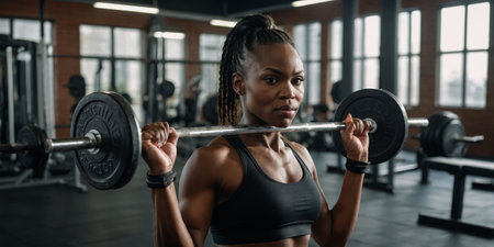 Strong woman lifting weights in a modern gym during a fitness session for strength training