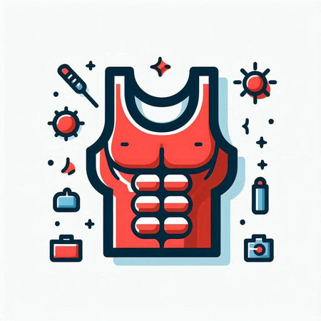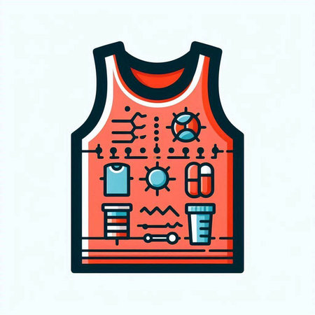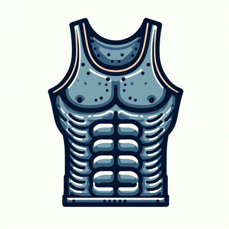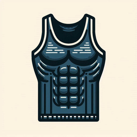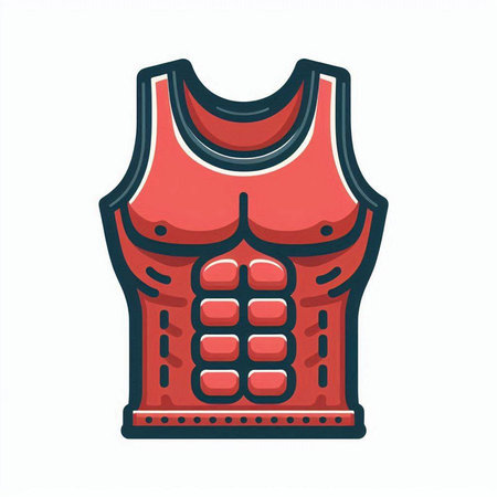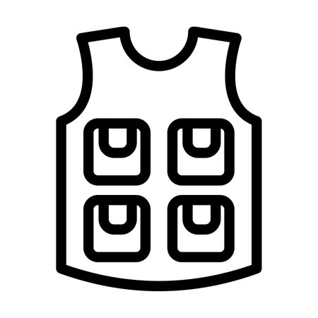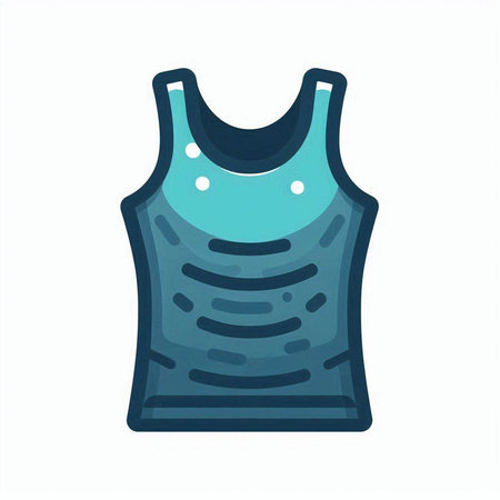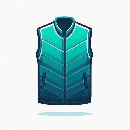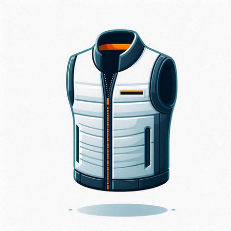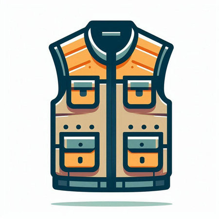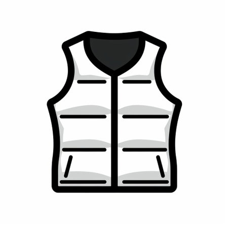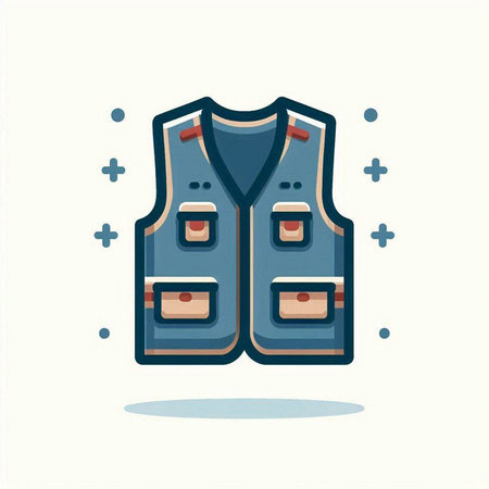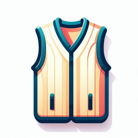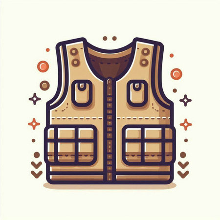a minimalist 2d graphic of a vest, featuring warmcore style and high contrast. the vest is depicted in a simplistic cartoon manner, with personal iconography elements. the white background enhances the goosepunk aesthetic of the illustration. ai generated