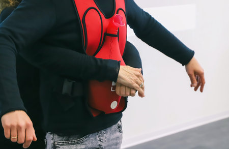 Man Wearing Illuminated Fitness Vest in Modern Gym