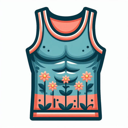 Colorful vector illustration of a sleeveless t-shirt with flowers