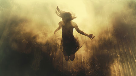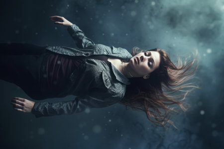 An AI generated illustration of a woman levitating invivid colors, a world of colours and emotions