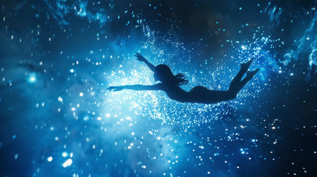 An astronaut gracefully floats through space, surrounded by stars and planets, capturing the boundless beauty and infinite wonder of the universe.