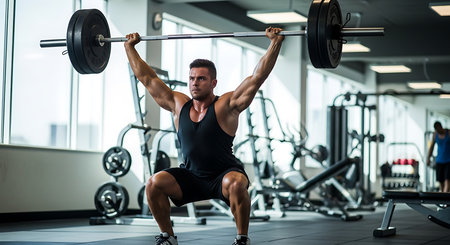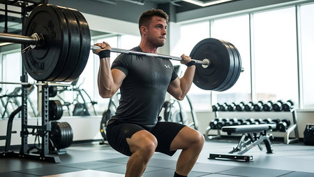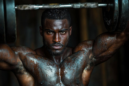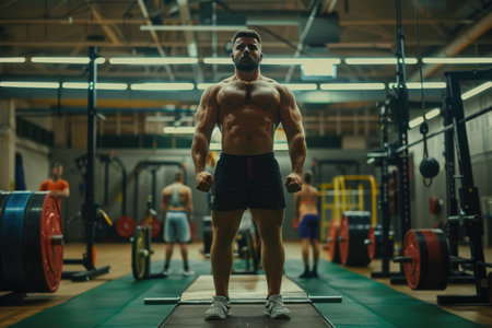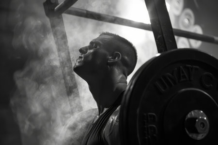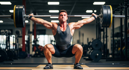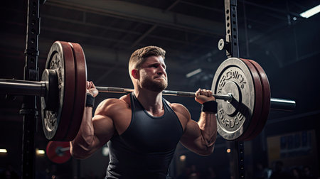 Intense weightlifting scene body against weight bright gym setting