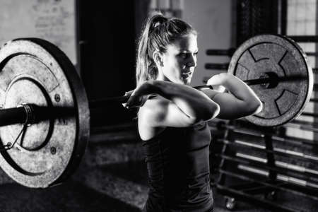 Young athlete woman doing barbell snatch exercise on a fitness routine at the box gym