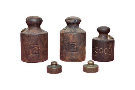 Old metal wights in row with vintage effect