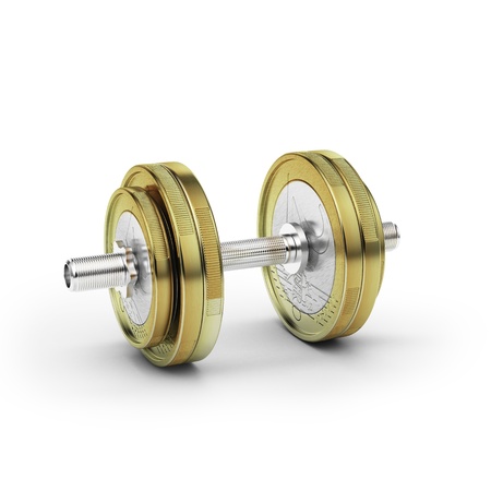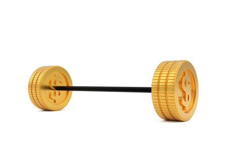 Barbell made from coins, business and financial concept, 3d illustration render.