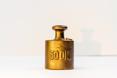 Vintage Half Kilogram Golden Calibration Weight on White Background