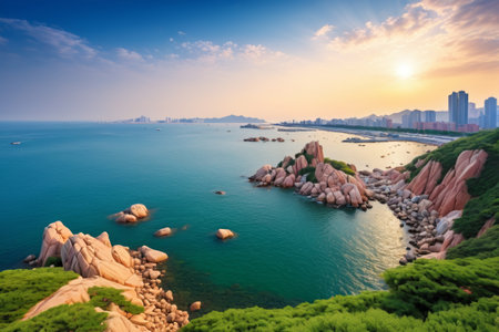 Qingdao coastline city scenery panorama