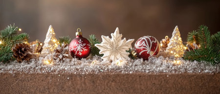 New Year decorations close-up, Christmas holiday background, realistic illustration