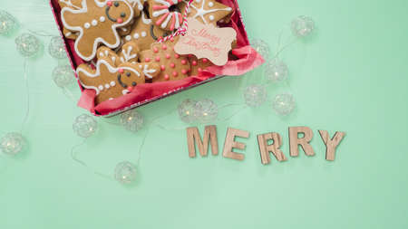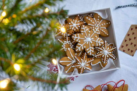 Christmas gift. a symbol of Christmas ginger biscuits in a gift box