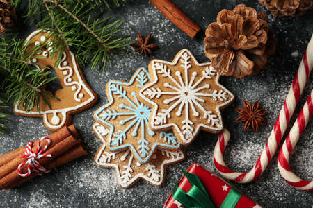 Christmas gingerbread cookies decoration with copy space